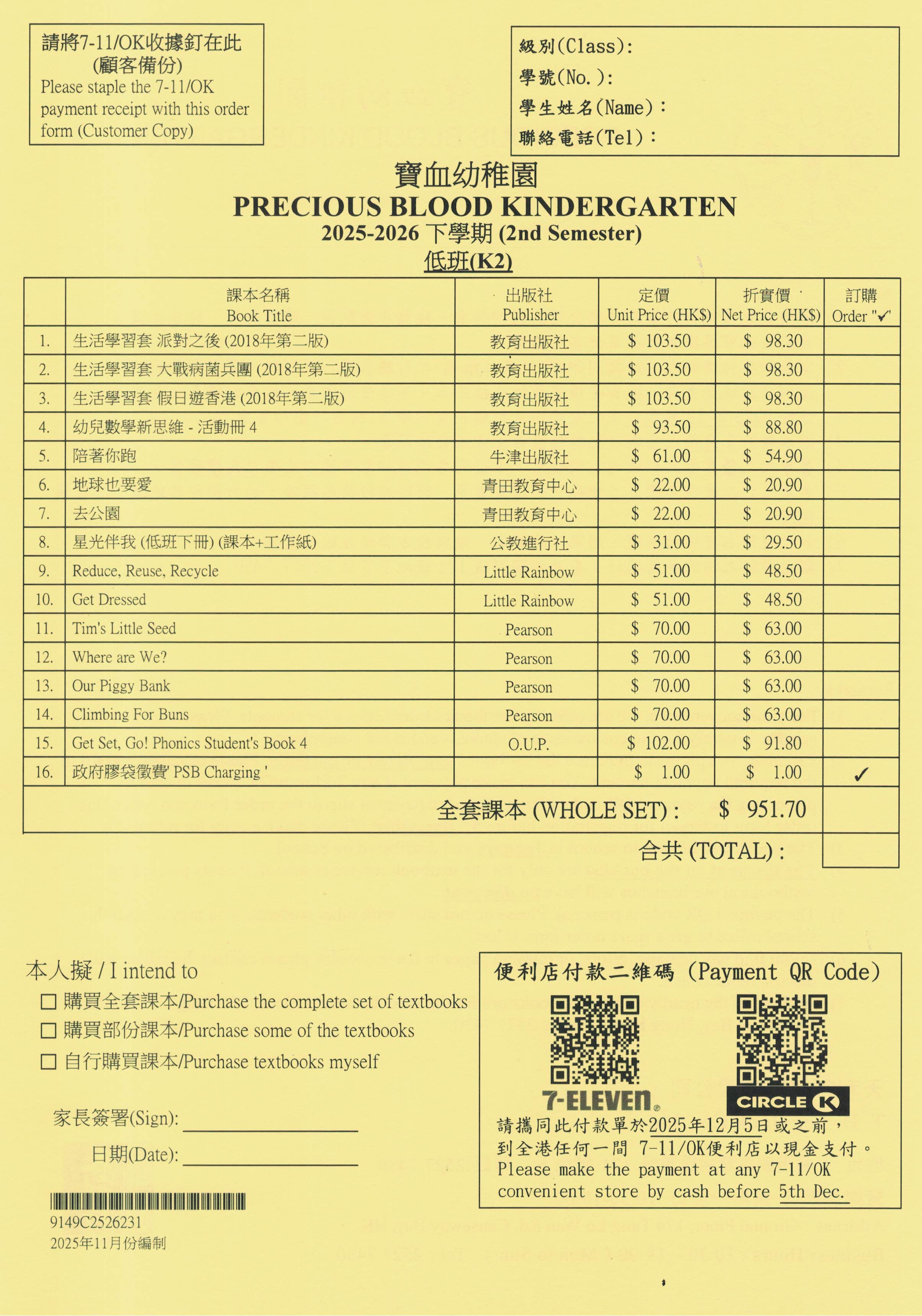 下學期低班雜費收費